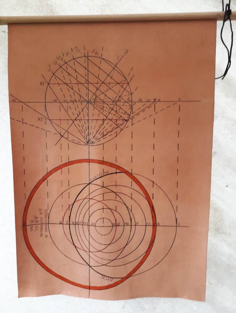 To construct an astrolabe, the ancients might have drawn a stereographic projection like on this leather plan.